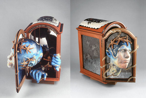 Plaster fabric, wood, mirror, paint, collage, starfish, metal, fur, paper, electric light.